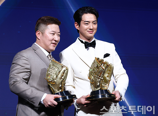 [½ºÆ÷Ã÷Åõµ¥ÀÌ ÆØÇöÁØ ±âÀÚ] 9ÀÏ ¼¿ï Àá½Ç ·Ôµ¥È£ÅÚ¿ùµå¿¡¼ ¿¸° 2025 KBO °ñµç±Û·¯ºê ½Ã»ó½Ä¿¡¼ ¼ö»óÀÚµéÀÌ ±â³äÃÔ¿µÀ» Çϰí ÀÖ´Ù. 2025.12.09.