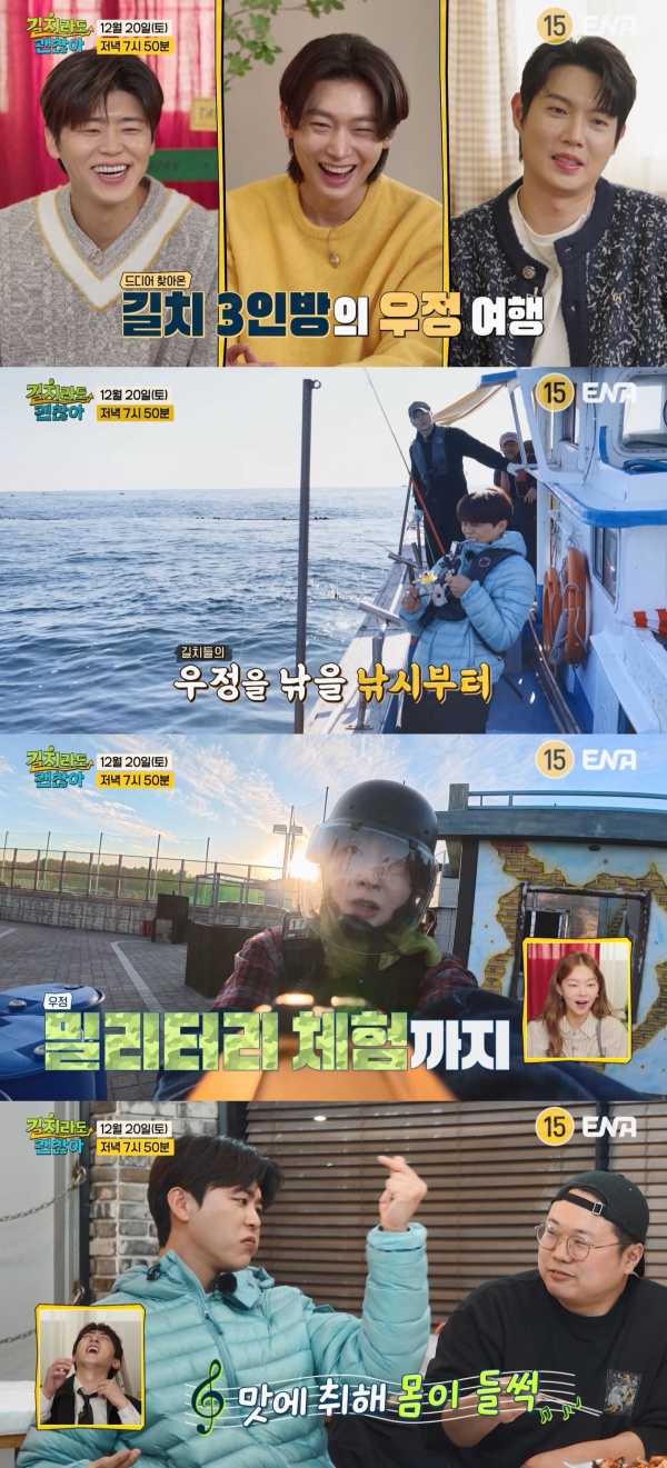 ENA ¿¹´É '±æÄ¡¶óµµ ±¦Âú¾Æ'(ÀÌÇÏ '±æÄ¡')ÀÇ À̹ø ¿©Á¤Àº ±æÄ¡ 3ÀιæÀÌ Ã³À½À¸·Î ÇÔ²² ¶°³ª´Â ±¹³» ¿©ÇàÀ¸·Î, Èú¸µ°ú ¾×ƼºñƼ°¡ °øÁ¸ÇÏ´Â °¿øµµ¸¦ ¹è°æÀ¸·Î ÆîÃÄÁø´Ù. ¿ìÁ¤À» ´ÙÁö´Â ¿©ÇàÀÎ µ¿½Ã¿¡, ½ÂºÎ¿åÀ» ÀÚ±ØÇÏ´Â ³»±â°¡ ´õÇØÁö¸ç "¿ìÁ¤ ¿©ÇàÀÌ¶ó ¾²°í, ³²ÀÚµéÀÇ ÀǸ® °ÔÀÓÀ̶ó°í ÀдÂ" ÄÚ½º·Î ±â´ë¸¦ ¸ðÀº´Ù.