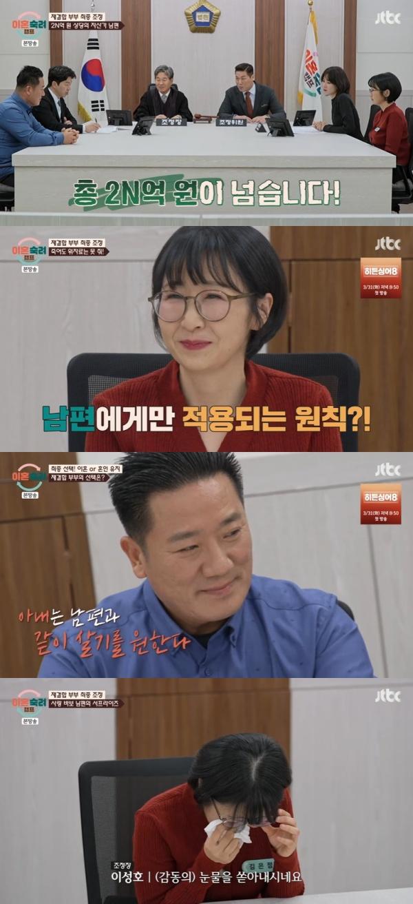À̾î '¹«¼Ó ºÎºÎ'ÀÇ ÃÖÁ¾ Á¶Á¤ÀÌ ½ÃÀ۵ƴÙ. ¾Æ³» ÃøÀº 4000¸¸ ¿øÀ» ³²Æí¿¡°Ô ÁÖ°í, 乫 1¾ï8000¸¸ ¿øÀº º»ÀÎÀÌ ´Ù »óȯÇϰڴٰí Á¦¾ÈÇß´Ù. À̸¦ µéÀº ³²ÆíÀº °¨Á¤ÀÌ ºÏ¹ÞÃÄ ´«¹°À» Èê·È´Ù.
