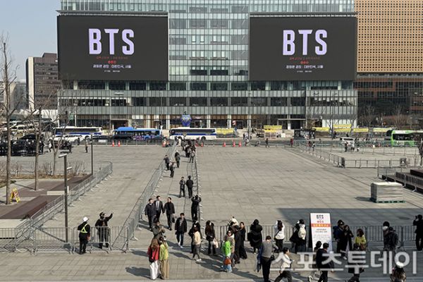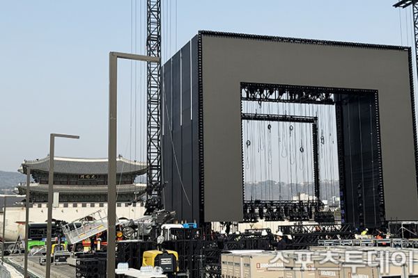 [½ºÆ÷Ã÷Åõµ¥ÀÌ ±Ç±¤ÀÏ ±âÀÚ] ¹æÅº¼Ò³â´Ü(BTS) ¼¿ï ±¤È¹®±¤Àå ÄÄ¹é °ø¿¬À» ¾ÕµÐ 17ÀÏ ¼¿ï Á¾·Î±¸ ±¤È¹®±¤Àå¿¡¼ 'BTS ÄÄ¹é ¶óÀ̺ê: ¾Æ¸®¶û(ARIRANG)' ¹«´ë¼³Ä¡¸¦ Çϰí ÀÖ´Ù. ÇÑÆí ±¤È¹®±¤ÀåÀº ¹Ì¸® ±¸°æ ³ª¿Â ÆÒµé°ú °ø¿¬À» ÁغñÁßÀÎ ÀÛ¾÷ÀÚµé·Î ºÏÀûÀ̰í ÀÖ´Ù. 2026.03.17.