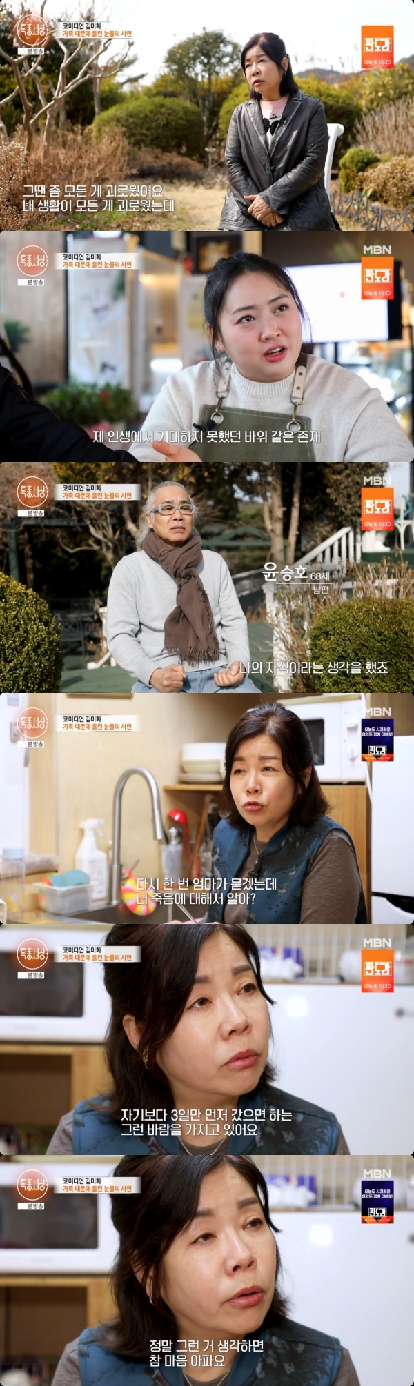 ±è¹ÌÈ­´Â "»ç½ÇÀº ¾Æµéº¸´Ù ³²ÆíÀÌ ºÒ½ÖÇÏ´Ù. Àڱ⺸´Ù 3Àϸ¸ ¸ÕÀú °¬À¸¸é ÇÏ´Â ¹Ù¶÷ÀÌ ÀÖ´Ù. ±×·± °É »ý°¢ÇÏ¸é ¸¶À½ÀÌ ¾ÆÇÁ´Ù. ´©°¡ ÀÚ±â ÀÚ½ÄÀ» ¸ÕÀú ¶°³ª º¸³»°í ½Í¾î Çϰڳª"¶ó¸ç ´«¹°À» Èê·È´Ù.