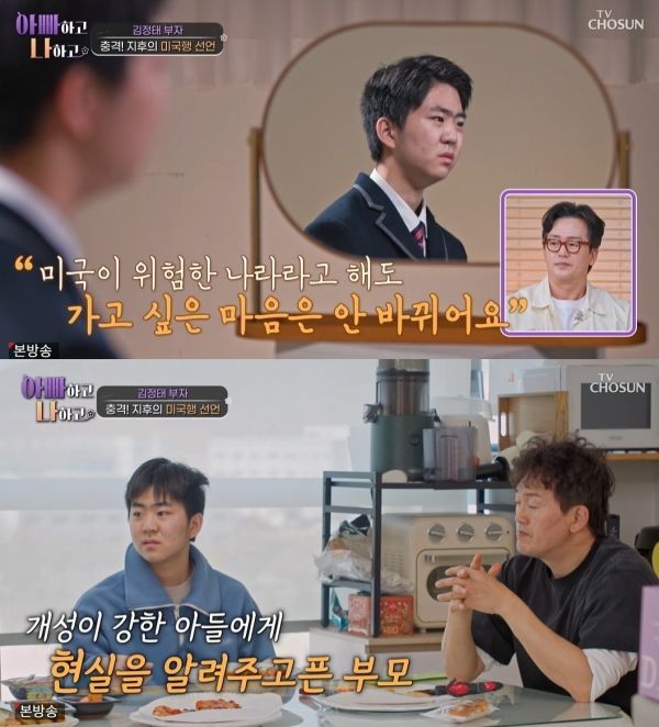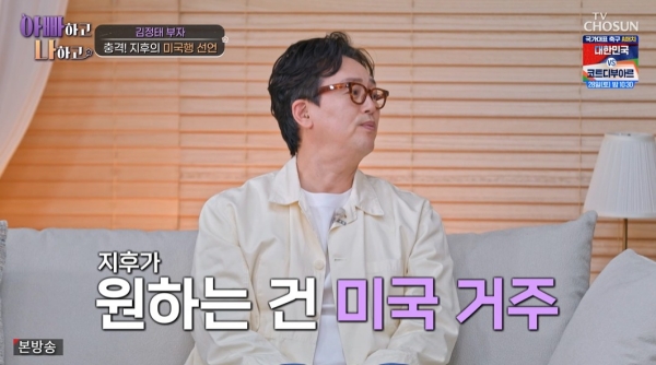 25ÀÏ ¹æ¼ÛµÈ TVÁ¶¼± '¾ÆºüÇÏ°í ³ªÇϰí'¿¡¼ ±èÁ¤ÅÂÀÇ Ã¹Â° ¾Æµé ÁöÈİ¡ ¹Ì±¹À¸·Î °¡°í ½Í´Ù´Â ¶æÀ» ¹àÇû´Ù.