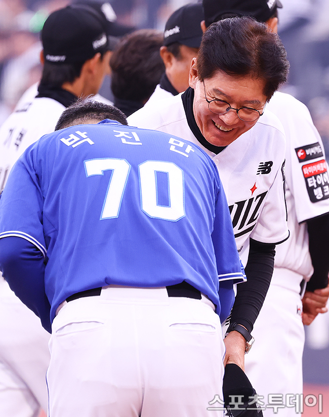 [¼ö¿ø=½ºÆ÷Ã÷Åõµ¥ÀÌ ÆØÇöÁØ ±âÀÚ] 3ÀÏ ¼ö¿øKTÀ§ÁîÆÄÅ©¿¡¼ ¿¸° 2026 KBO¸®±× »ï¼º ¶óÀÌ¿ÂÁî¿Í KT À§ÁîÀÇ °æ±â, KT À̰ö °¨µ¶ÀÌ »ï¼º ¹ÚÁø¸¸ °¨µ¶°ú ÀλçÇϰí ÀÖ´Ù. 2026.04.03.