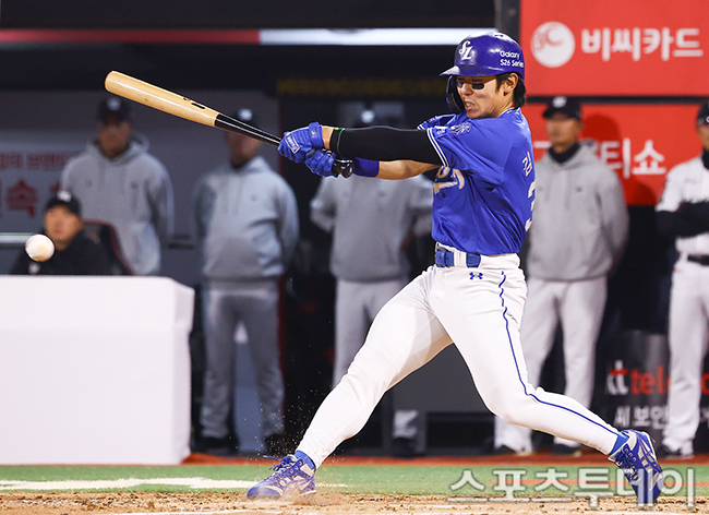 [¼ö¿ø=½ºÆ÷Ã÷Åõµ¥ÀÌ ÆØÇöÁØ ±âÀÚ] 3ÀÏ ¼ö¿øKTÀ§ÁîÆÄÅ©¿¡¼ ¿¸° 2026 KBO¸®±× »ï¼º ¶óÀÌ¿ÂÁî¿Í KT À§ÁîÀÇ °æ±â, 3ȸÃÊ ¹«»ç 1,3·ç »ï¼º ±è¼ºÀ±ÀÌ ¶¥º¼·Î ÁÖÀÚ¸¦ ºÒ·¯µéÀ̰í ÀÖ´Ù. 2026.04.03.