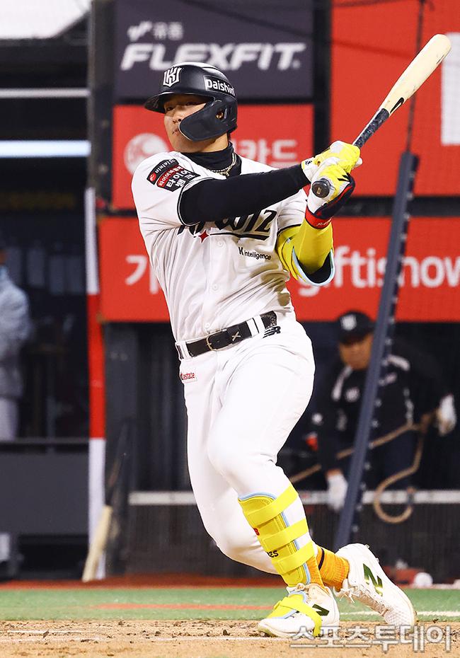 [¼ö¿ø=½ºÆ÷Ã÷Åõµ¥ÀÌ ÆØÇöÁØ ±âÀÚ] 3ÀÏ ¼ö¿øKTÀ§ÁîÆÄÅ©¿¡¼­ ¿­¸° 2026 KBO¸®±× »ï¼º ¶óÀÌ¿ÂÁî¿Í KT À§ÁîÀÇ °æ±â, 3ȸ¸» 2»ç 1·ç KT ¾ÈÇö¹ÎÀÌ ÆÄ¿ïº¼À» ³¯¸®°í ÀÖ´Ù. 2026.04.03.