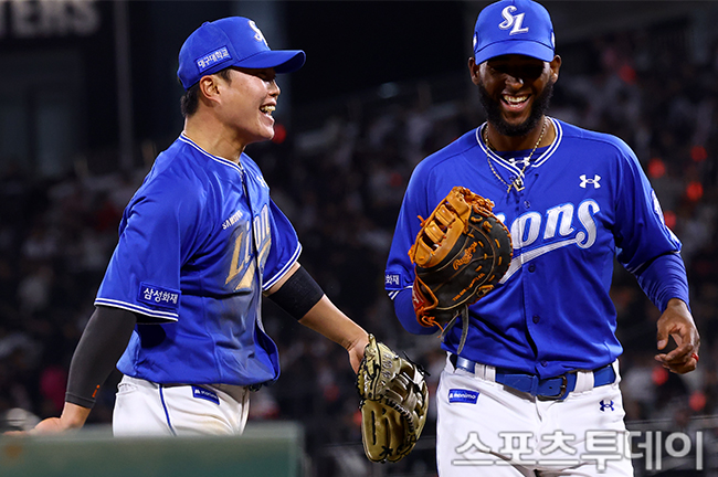 [¼ö¿ø=½ºÆ÷Ã÷Åõµ¥ÀÌ ÆØÇöÁØ ±âÀÚ] 3ÀÏ ¼ö¿øKTÀ§ÁîÆÄÅ©¿¡¼ ¿¸° 2026 KBO¸®±× »ï¼º ¶óÀÌ¿ÂÁî¿Í KT À§ÁîÀÇ °æ±â, 7ȸ¸» ¼öºñ¸¦ ³¡³½ »ï¼º ·ùÁöÇõ°ú µð¾ÆÁî°¡ ȯÇÏ°Ô ¿ô°í ÀÖ´Ù. 2026.04.03.