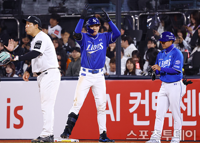 [¼ö¿ø=½ºÆ÷Ã÷Åõµ¥ÀÌ ÆØÇöÁØ ±âÀÚ] 3ÀÏ ¼ö¿øKTÀ§ÁîÆÄÅ©¿¡¼­ ¿­¸° 2026 KBO¸®±× »ï¼º ¶óÀÌ¿ÂÁî¿Í KT À§ÁîÀÇ °æ±â, 8ȸÃÊ 1»ç »ï¼º ±¸ÀÚ¿íÀÌ ¾ÈŸ¸¦ Ä¡°í ÀÖ´Ù. 2026.04.03.