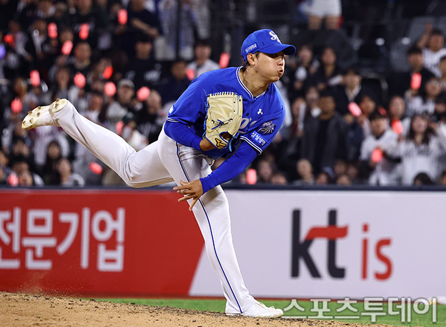 [¼ö¿ø=½ºÆ÷Ã÷Åõµ¥ÀÌ ÆØÇöÁØ ±âÀÚ] 3ÀÏ ¼ö¿øKTÀ§ÁîÆÄÅ©¿¡¼ ¿¸° 2026 KBO¸®±× »ï¼º ¶óÀÌ¿ÂÁî¿Í KT À§ÁîÀÇ °æ±â, 8ȸ¸» »ï¼º ¹èÂù½ÂÀÌ ¿ªÅõÇϰí ÀÖ´Ù. 2026.04.03.