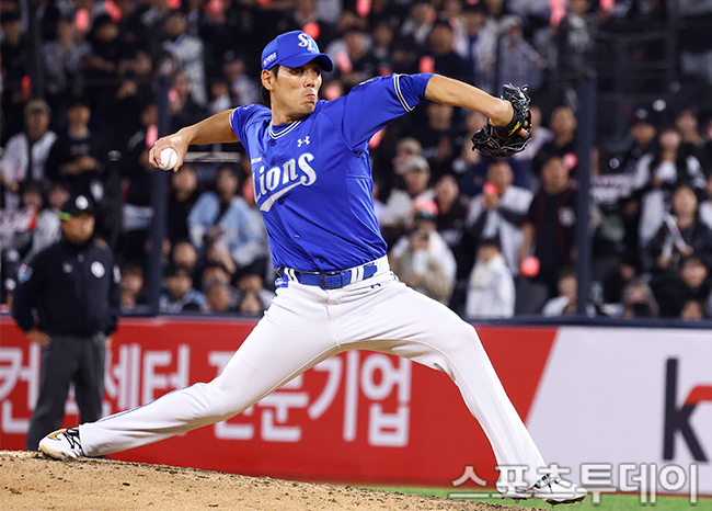[¼ö¿ø=½ºÆ÷Ã÷Åõµ¥ÀÌ ÆØÇöÁØ ±âÀÚ] 3ÀÏ ¼ö¿øKTÀ§ÁîÆÄÅ©¿¡¼­ ¿­¸° 2026 KBO¸®±× »ï¼º ¶óÀÌ¿ÂÁî¿Í KT À§ÁîÀÇ °æ±â, 9ȸ¸» »ï¼º ±èÀçÀ±ÀÌ ¿ªÅõÇϰí ÀÖ´Ù. 2026.04.03.