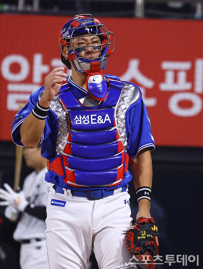 [¼ö¿ø=½ºÆ÷Ã÷Åõµ¥ÀÌ ÆØÇöÁØ ±âÀÚ] 3ÀÏ ¼ö¿øKTÀ§ÁîÆÄÅ©¿¡¼ ¿¸° 2026 KBO¸®±× »ï¼º ¶óÀÌ¿ÂÁî¿Í KT À§ÁîÀÇ °æ±â, 9ȸ¸» ¹«»ç 1·ç ÁÖÀÚ ÀåÁøÇõÀÌ ±è»ó¼ö Ÿ¼® ¶§ µµ·ç¸¦ ½ÃµµÇÏ´Ù ¾Æ¿ôµÆ´Ù. µµ·ç ¸·¾Æ³½ °¹ÎÈ£. 2026.04.03.