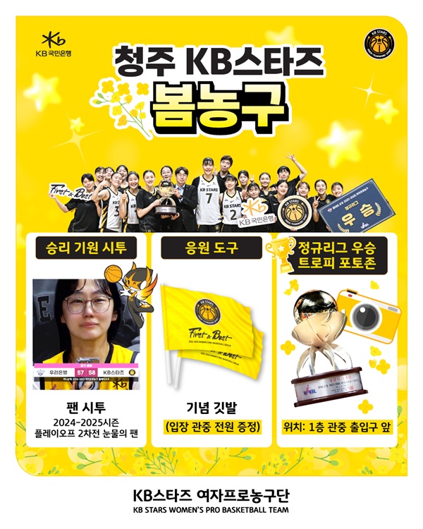 ¸ÕÀú, KB½ºÅ¸Áî´Â ÀÔÀå °üÁß Àü¿ø¿¡°Ô ±¸´ÜÀÇ Ä³Ä¡ÇÁ·¹ÀÌÁî(First & Best)°¡ »õ°ÜÁø ÀÀ¿ø ±ê¹ßÀ» ÁõÁ¤ÇÑ´Ù. Ȩ±¸ÀåÀ» ±¸´ÜÀÇ »ó¡»öÀÎ ³ë¶õ ¹°°á·Î ¹°µéÀ̰í, ÀÌ»öÀûÀÎ ÀÀ¿ø ÆÛÆ÷¸Õ½º¸¦ ´õÇØ ÃàÁ¦ ºÐÀ§±â¸¦ ÇÑÃþ °íÁ¶½Ãų ¿¹Á¤ÀÌ´Ù.