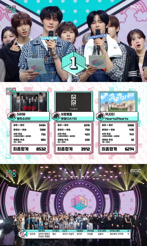 11ÀÏ ¹æ¼ÛµÈ MBC '¼î! À½¾ÇÁß½É'¿¡´Â ¹æÅº¼Ò³â´Ü '½ºÀ«(SWIM)', ¿øÇÊ '»ç¶ûº´µ¿', ÇÏÃ÷ÅõÇÏÃ÷ '·çµå!(RUDE!)'°¡ 1À§ Èĺ¸¿¡ ¿Ã¶ú´Ù.