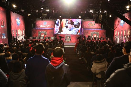 À̳¯ °á½ÂÀüÀÌ ÁøÇàµÈ ¼¿ï ´ëÄ¡µ¿ ÇÁ¸¯¾÷ ½ºÆ©µð¿À´Â 300¿© ¸íÀÇ °üÁßÀÌ ÇöÀåÀ» °¡µæ ä¿ü´Ù. ½ºÆ©µð¿À¸¦ Á÷Á¢ ãÁö ¸ø ÇÑ ÆÒµéÀº ¾ÆÇÁ¸®Ä«TV¸¦ ÅëÇØ °æ±â¸¦ ½ÃûÇß°í, °á½ÂÀü ¹æ¼Û ´©Àû Á¢¼ÓÀÚ¼ö´Â 32¸¸¸íÀÌ ³Ñ¾ú´Ù.