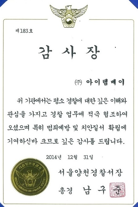 ¾ÆÀÌÅÛº£À̰¡ ¹ÞÀº °¨»çÀå /ÇØ´ç»ç Á¦°ø |